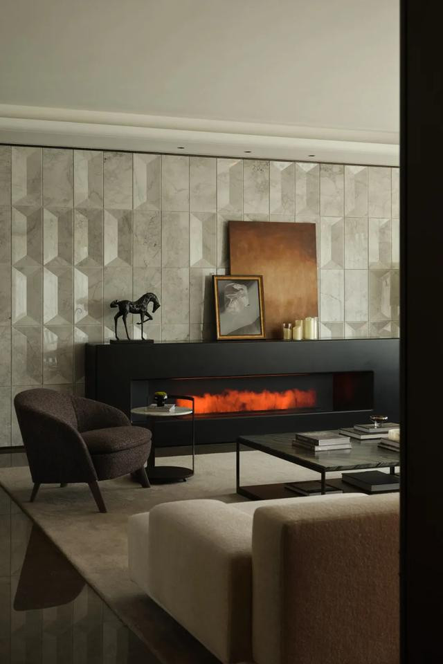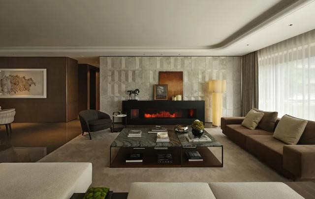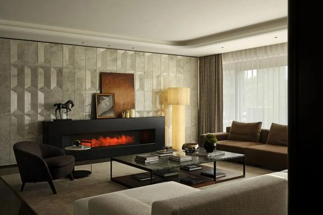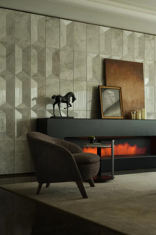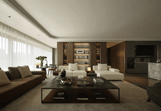 ◎ 贵奢材质为基,洄游动线串联简形奢质横厅,尽展隐奢格调与空间韵律。