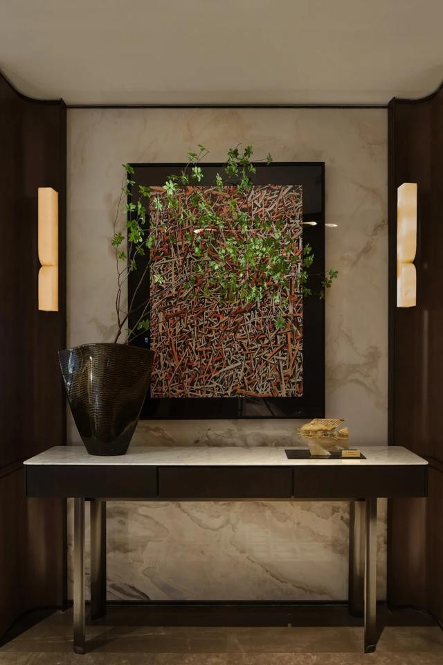 ◎ 入户玄关在材质碰撞中形成艺术化仪式场景