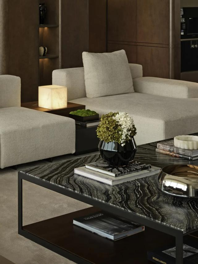 ◎ 沙发组来自意大利家具品牌Molteni&C,MARTEEN系列产品以简洁矩形轮廓为基础,线条利落,契合现代主义 “少即是多” 理念。