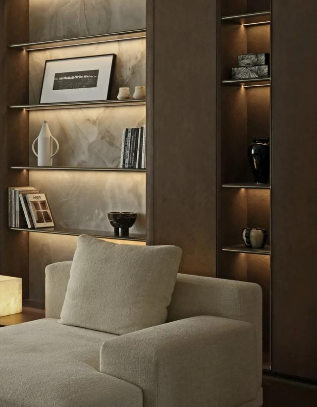 光影在空间中如丝绸般缱绻流淌,温润肌理与奢雅材质交织成岁月的细密纹路,极简线条轻轻勾勒出一隅静谧如诗的艺术之境。